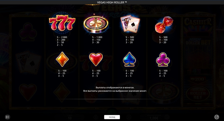 | Три семерки | 5 | 50 | 200 | 2 000 |