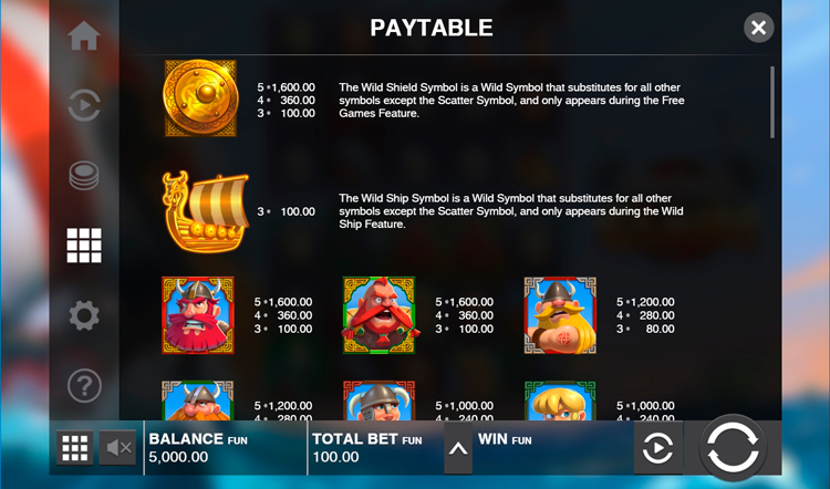 Таблица выплат Viking Clash