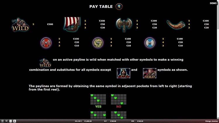 Таблица выплат Vikings Journey