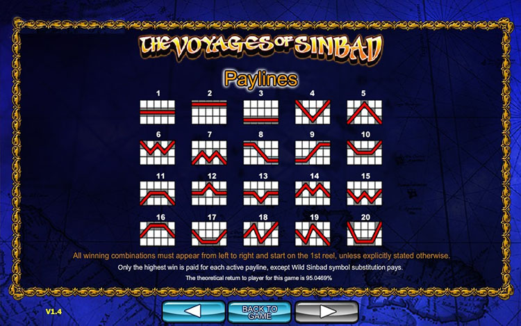 Таблица выплат The Voyages Of Sinbad