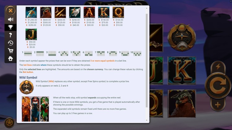 Таблица выплат Warrior Queens