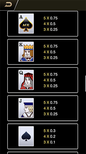 | J, Q, K, A | 0,25 | 0,5 | 0,75 |