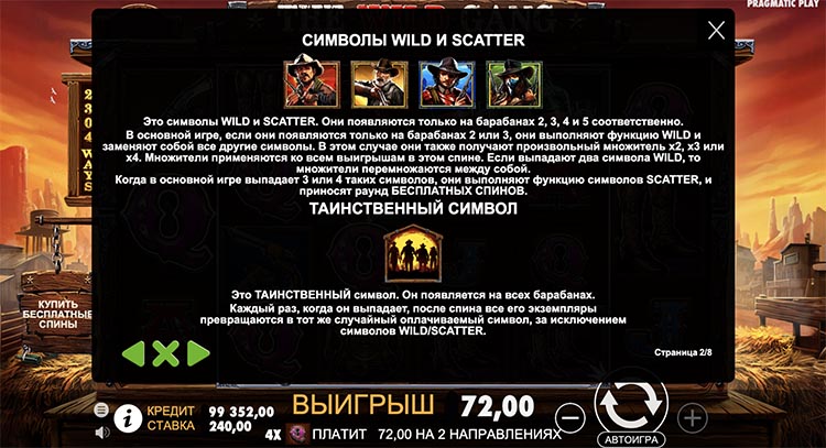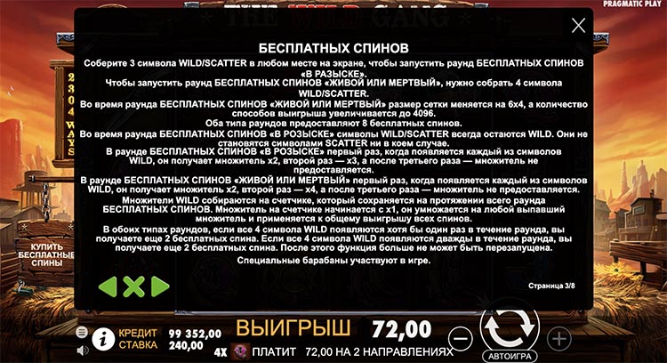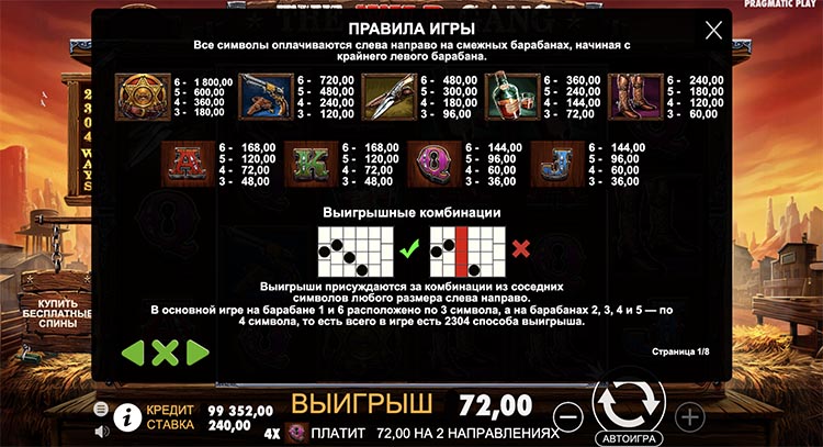 Таблица выплат The Wild Gang
