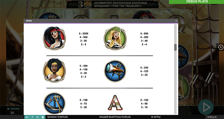 Таблица выплат Wild Jane