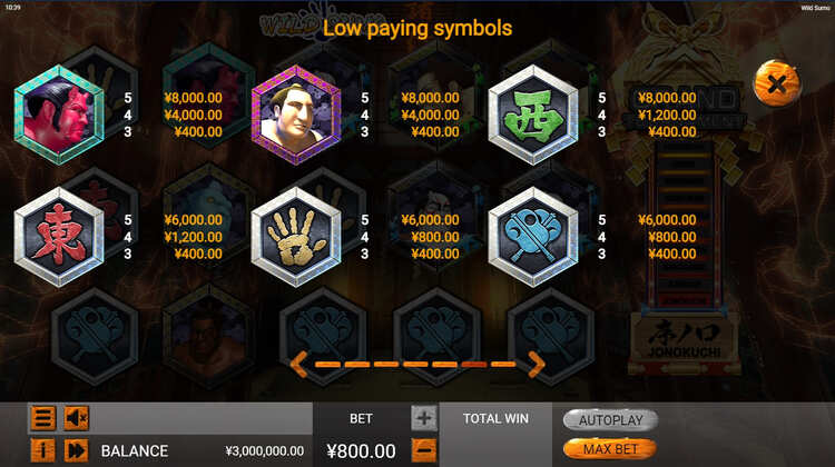 Таблица выплат Wild Sumo