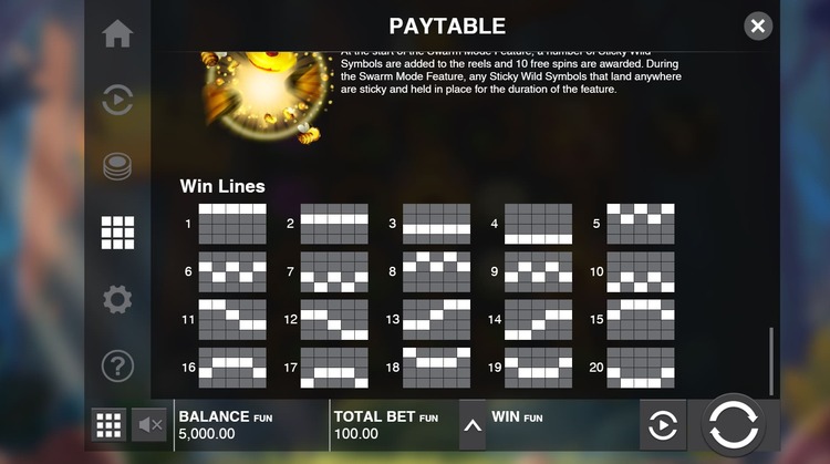 Таблица выплат Wild Swarm