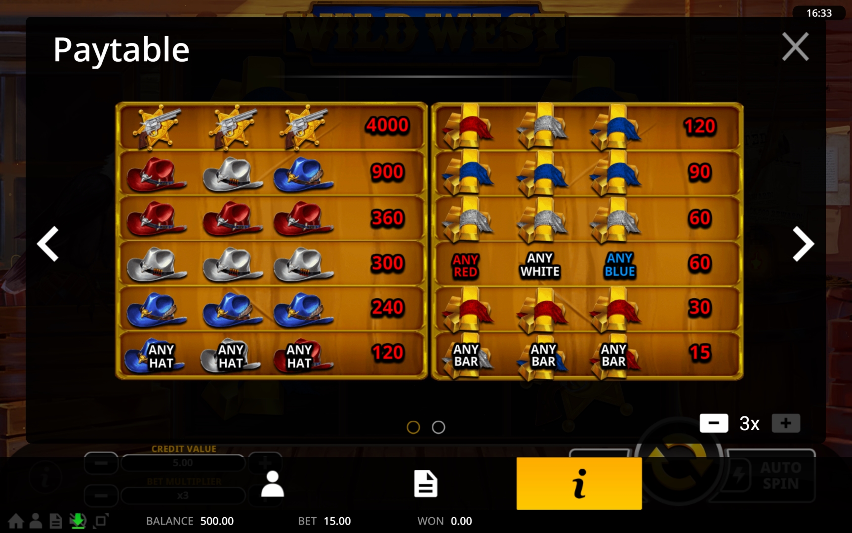 Таблица выплат Wild West