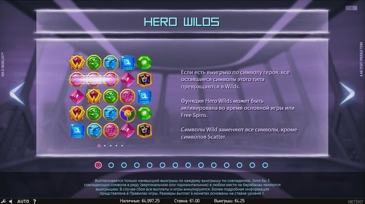 | Золотой камень с буквой W (Wild) | 100 | 500 | 2000 |