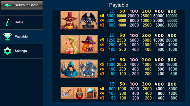 Таблица выплат Witch Hunter