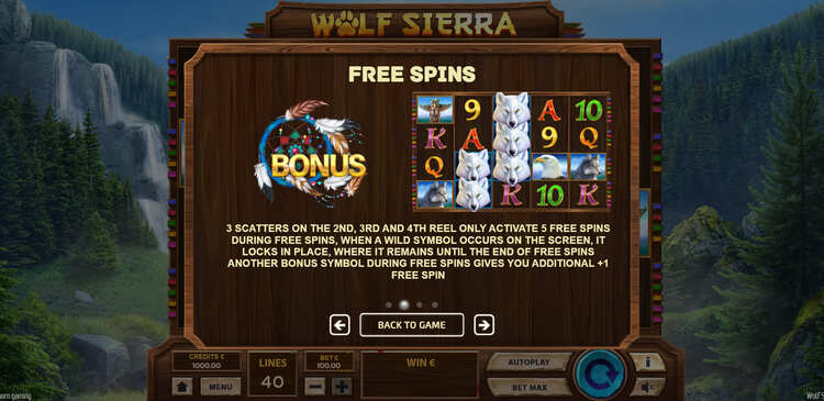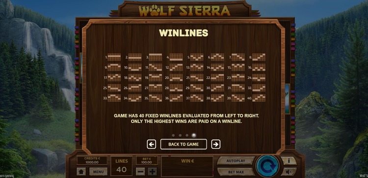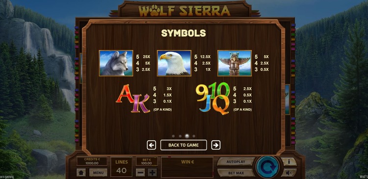 Таблица выплат Wolf Sierra