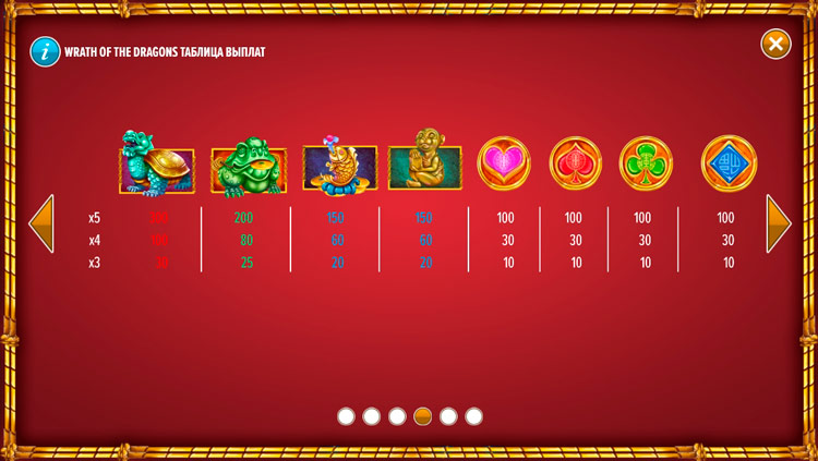 | Золотой дракон (Scatter) | 5 | 20 | 40 |