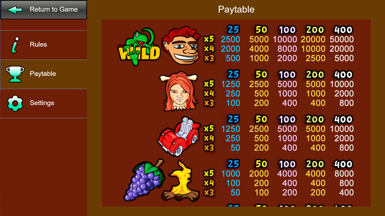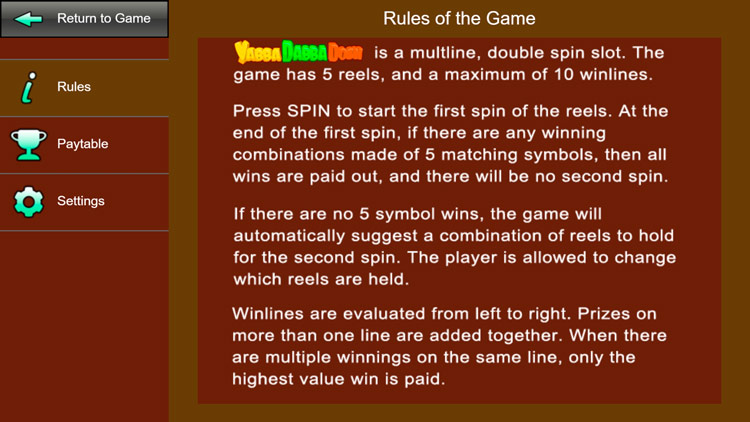 Таблица выплат Yabba Dabba Dosh