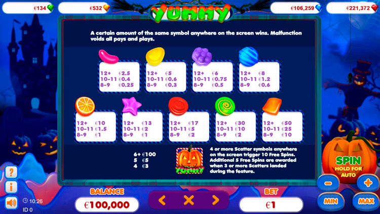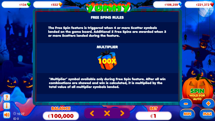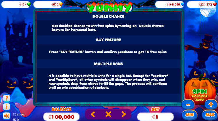 Дополнительные функции слота Yummy: Trick Or Treat: