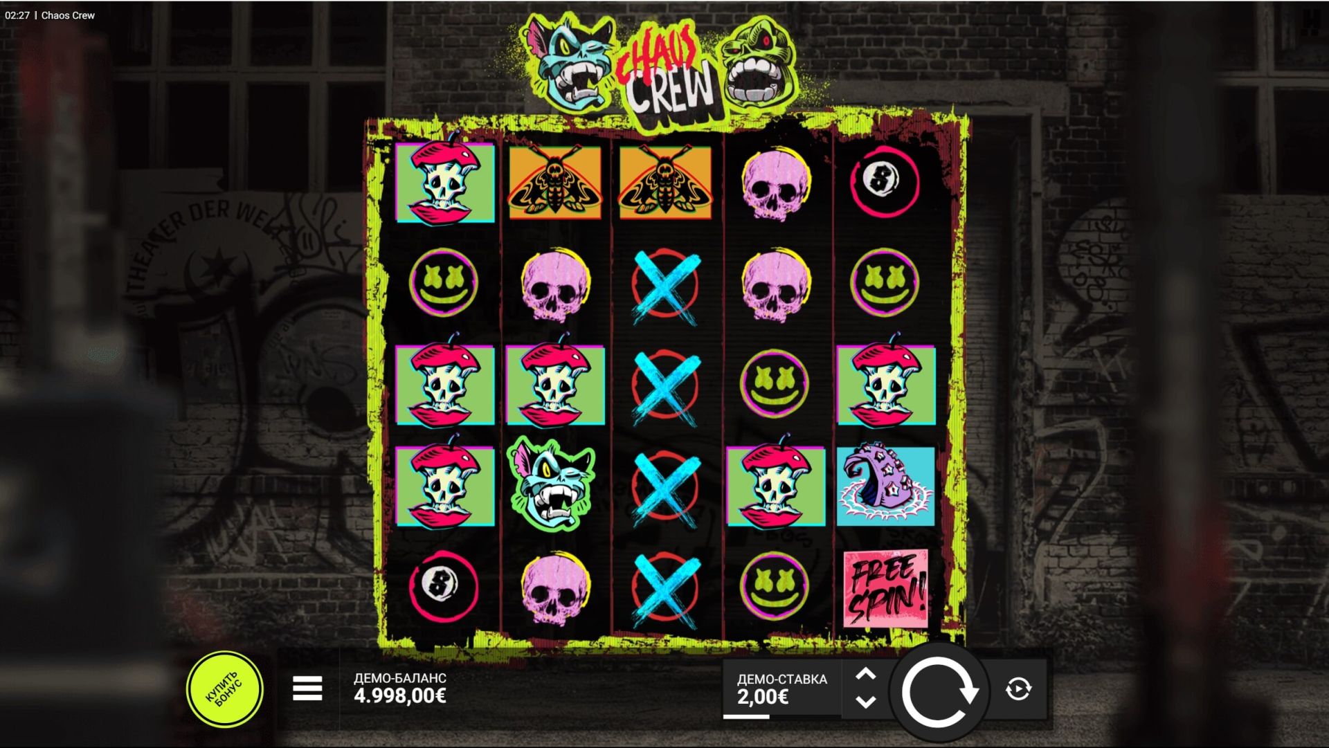 Некоторые игры посвящены искусству граффити, как, например, Chaos Crew. Невероятно непредсказуемый Chaos Crew - это бунтарский 5-барабанный, 5-рядный слот с 15 линиями выплат и огромным потенциалом выигрыша в 10 000 раз больше вашей ставки. Кроме того, он сопровождается потрясающим саундтреком, который улучшит ваши слуховые ощущения.