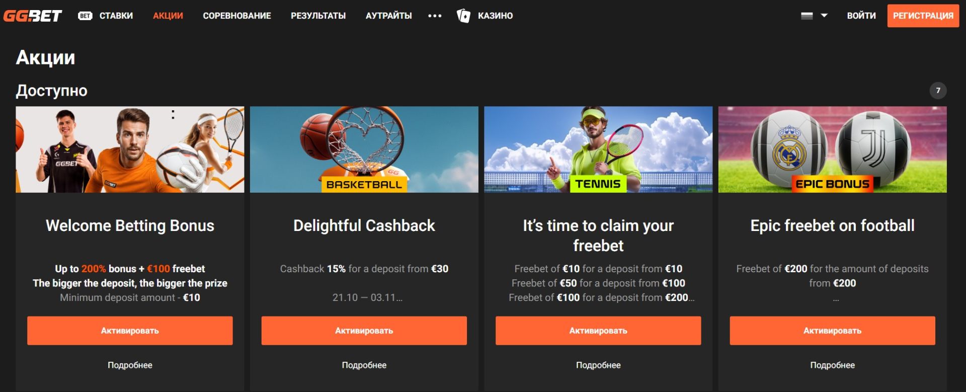 Актуальные условия всегда публикуются в разделе «Акции» на официальном сайте ggbet.com.