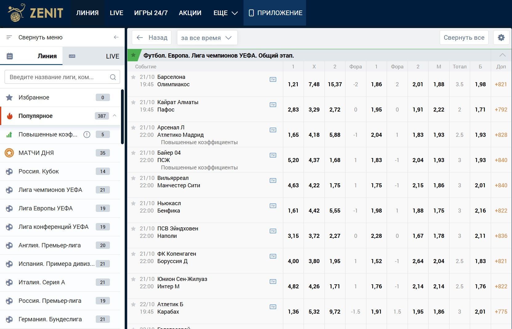 Официальный сайт БК Зенит — платформа оформлена в современном лаконичном дизайне, без перегруженности баннерами. Главный акцент сделан на удобстве навигации и скорости работы интерфейса.