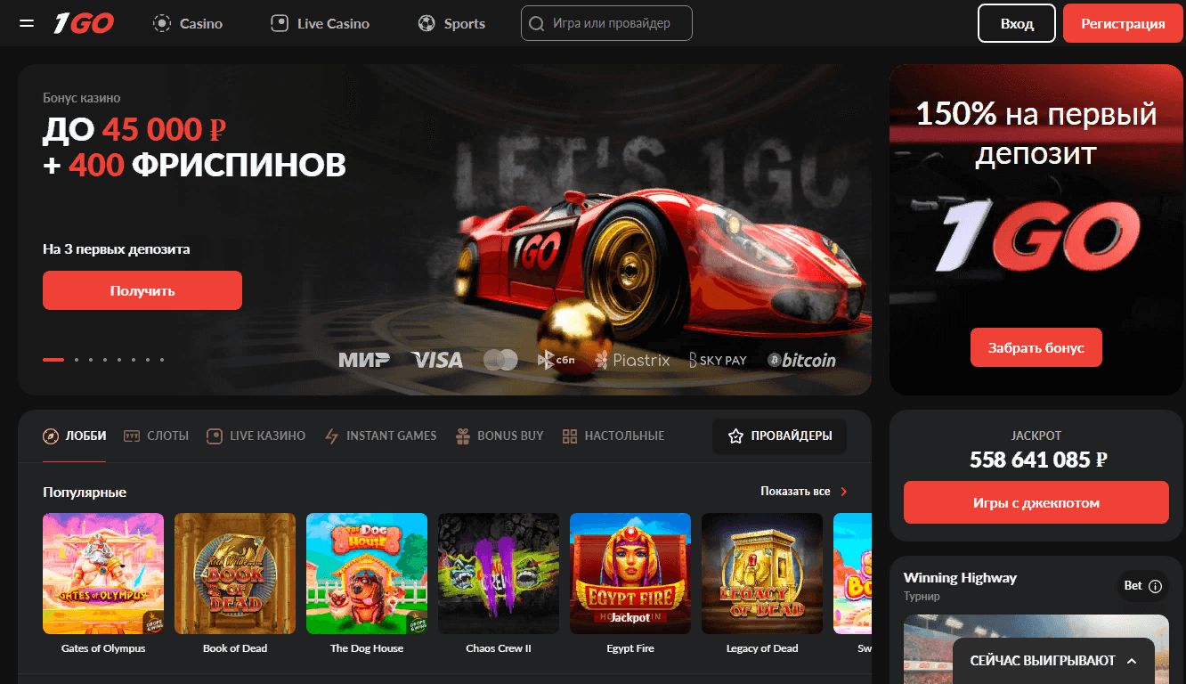 Для тех, кто ищет возможность выиграть крупную сумму, 1GO Casino предлагает более 1000 слотов с джекпотами. Эти игры разработаны ведущими мировыми студиями, такими как Betsoft, NetEnt и Pragmatic Play, что обеспечивает высокое качество и увлекательный игровой процесс.