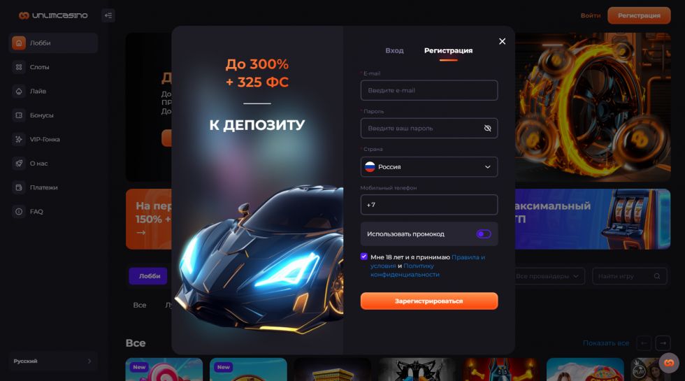Для того, чтобы получить возможность делать депозиты и ставки необходимо пройти процесс создания аккаунта: