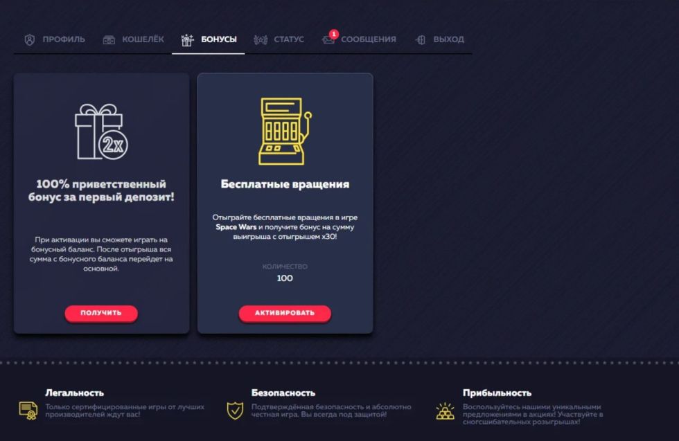 Новые пользователи казино могут воспользоваться бонусными бесплатными вращениями при регистрации. Выигрыши с этих вращений зачисляются на бонусный счет и требуют отыгрыша с вейджером Х20, что предоставляет новичкам отличный старт без значительных рисков.